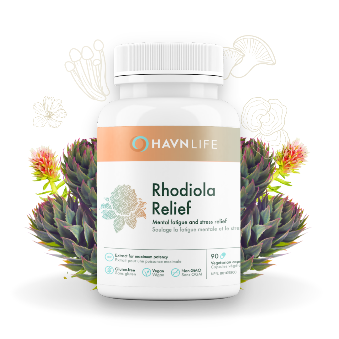 The plant extract rhodiola rosea is an adaptogen that provides relief from symptoms of stress including mental fatigue. HAVN Life Rhodiola Relief is formulated to support mental focus and mental stamina.