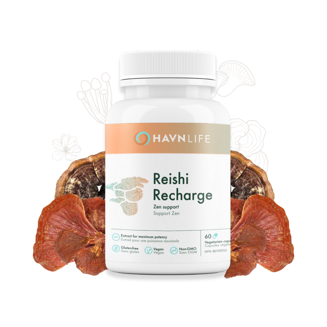 Reishi Recharge supports the immune system. Reishi has been used in Herbal Medicine around the world, as a source of energy, as well as stress and liver function support. Used in Traditional Chinese Medicine to strengthen the heart, reduce fatigue, improve insomnia, as well as coughs and wheezing symptoms.